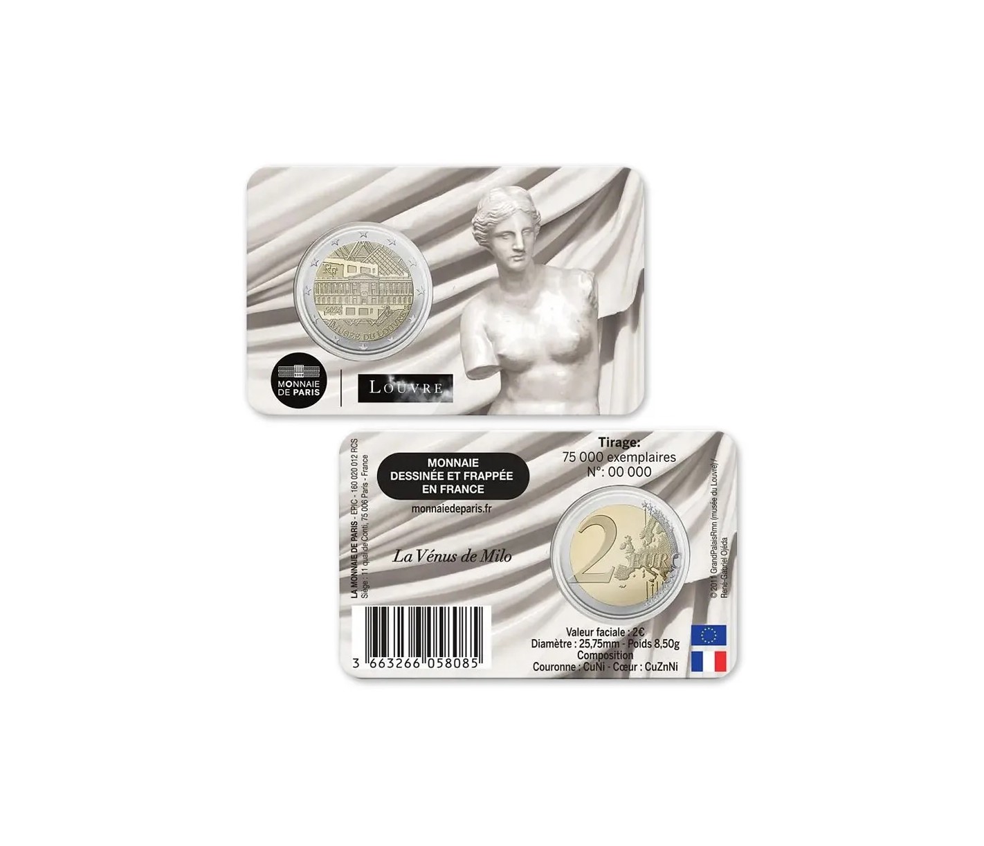 La France poursuit en 2025 sa magnifique série dédiés aux trésors du Louvre avec une pièce de 2 Euros commémorative mettant à l'honneur l'une des sculptures les plus célèbres au monde : la vénus de Milo