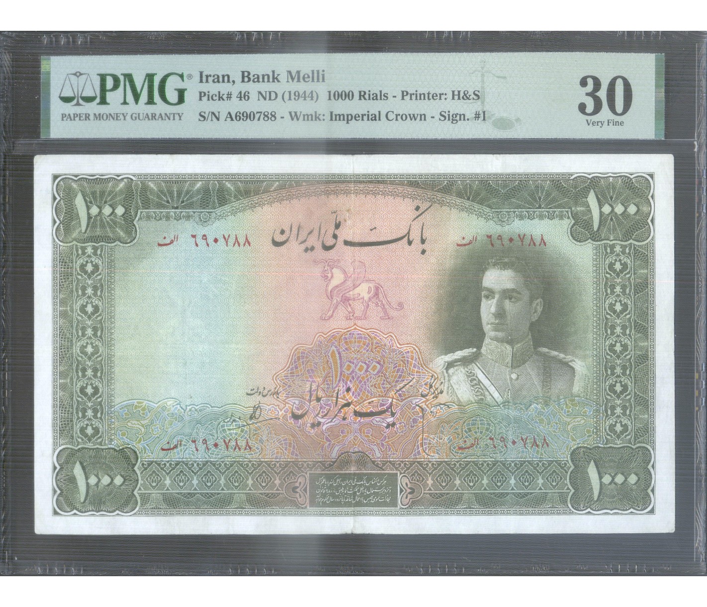 1000 Rials IRAN (1944) P.46, PMG 30 Very Fine