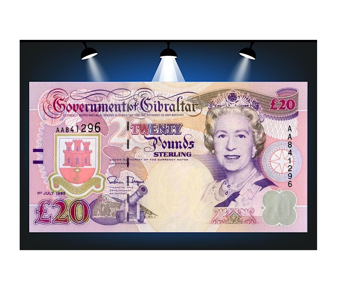 Découvrez ce superbe billet de 20 Pounds Gibraltar 1995 (P.27a), une émission emblématique de ce territoire britannique d’outre-mer.