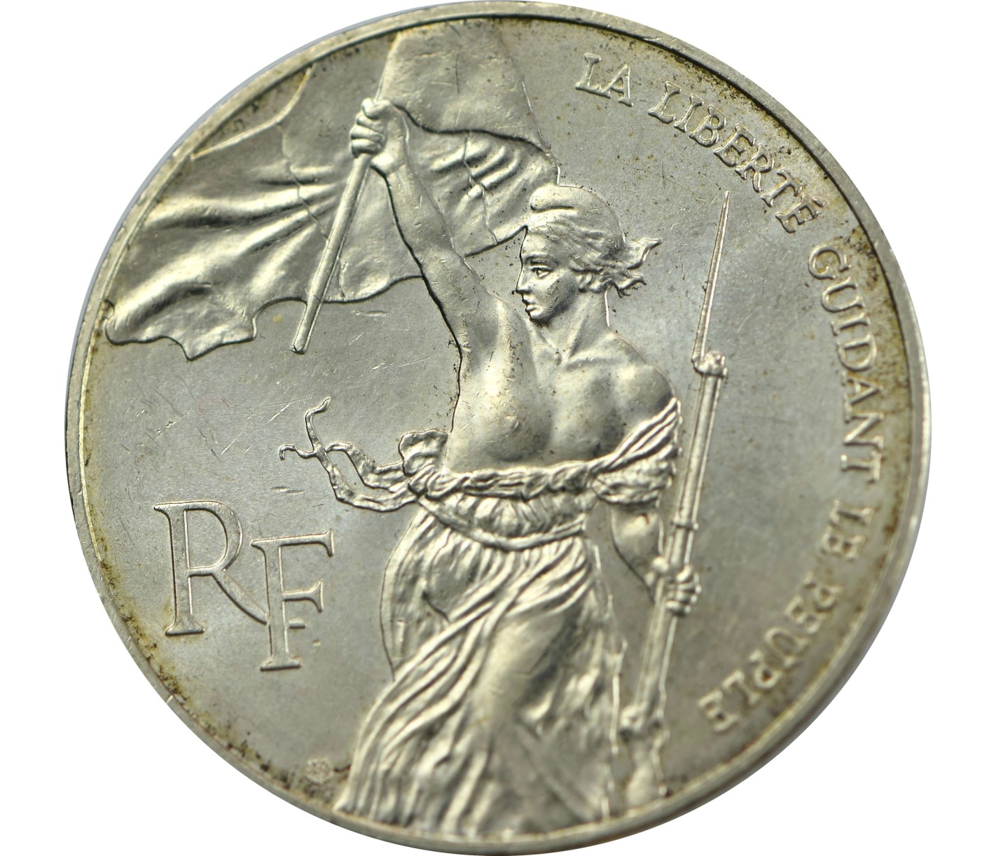 🇫🇷 Avers : Allégorie de la Liberté tenant le drapeau tricolore et un fusil, inspirée du célèbre tableau de Delacroix.